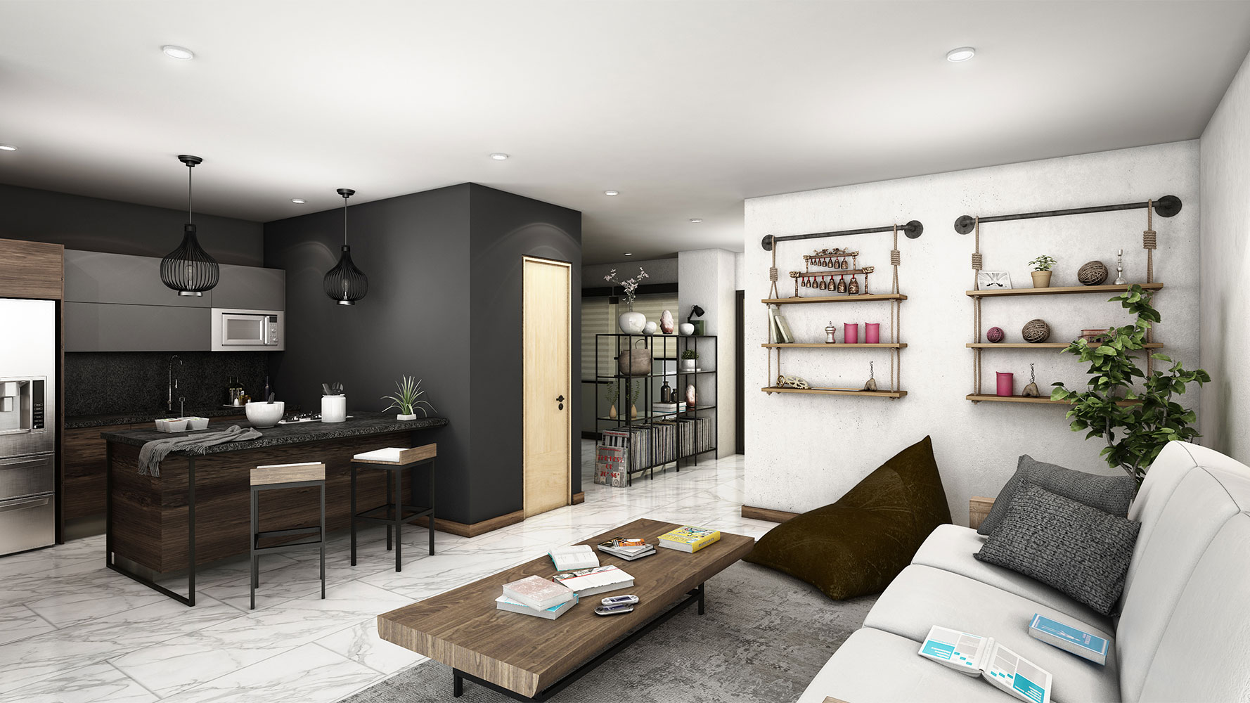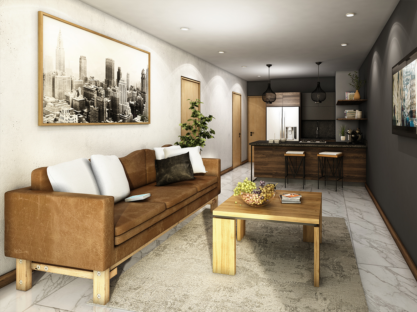 Departamentos de 1 y 2 recámaras, así como oficinas en planta baja.