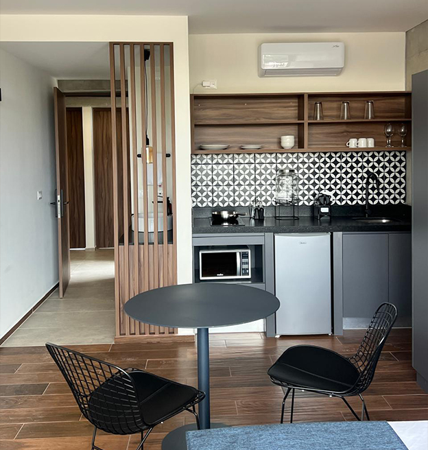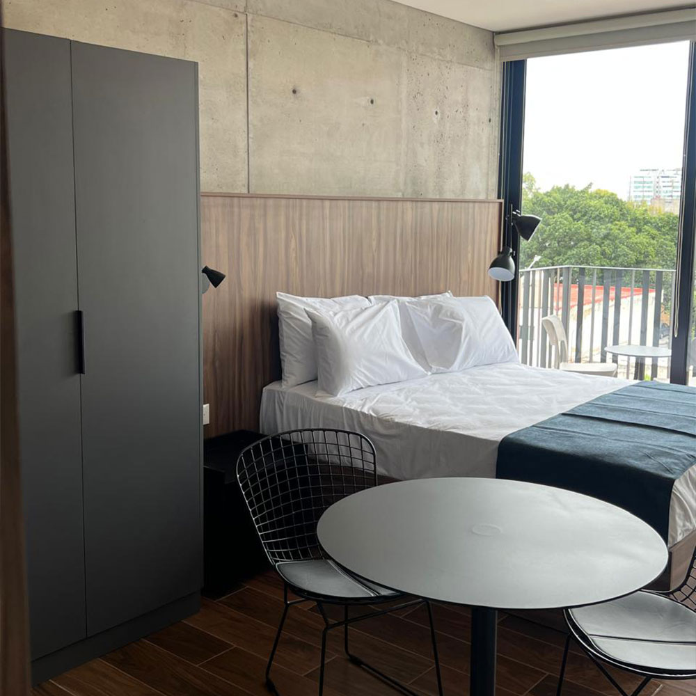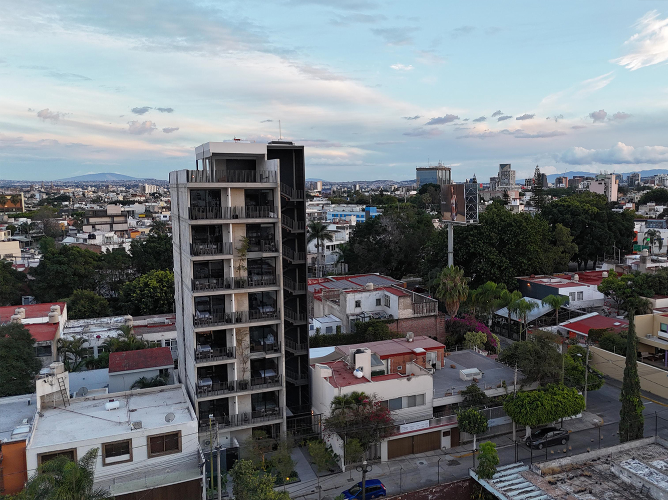 Con 38 estudios, sala de juntas y un roof garden con restaurante, Asís se convierte en una referencia de estancias cortas para ejecutivos que visitan Guadalajara para trabajar en la zona financiera.